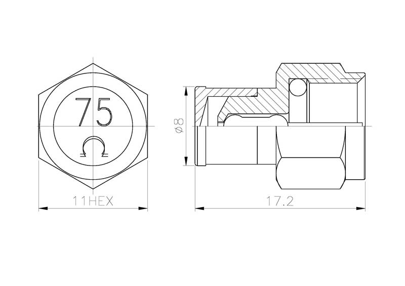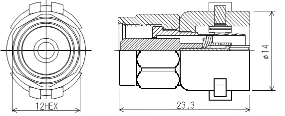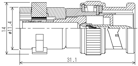 圧着が不要で取り付けが簡単です。ケーブルの端末加工をして編組を折返し、挿入するだけで取付けが完了します。漏洩レベルも-135dB~-140dBと優れています(一般的なかしめは接栓は-110dB程度)。