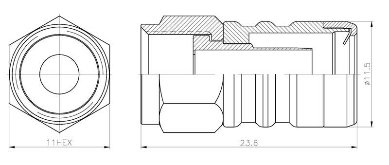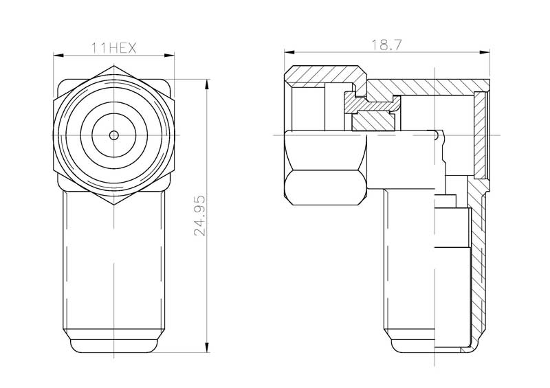 屋内で使用するプッシュオン式F型アダプタです。測定器等へ簡易的に取り付けする際に使用します。