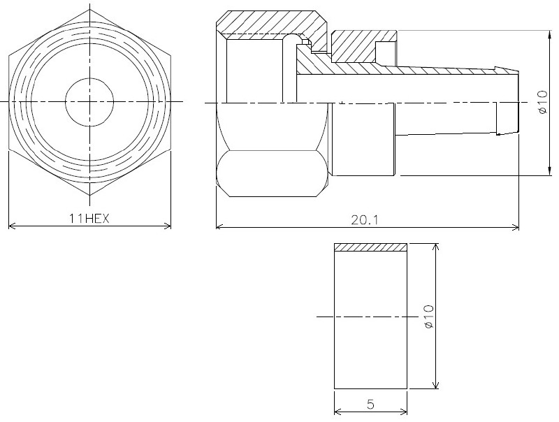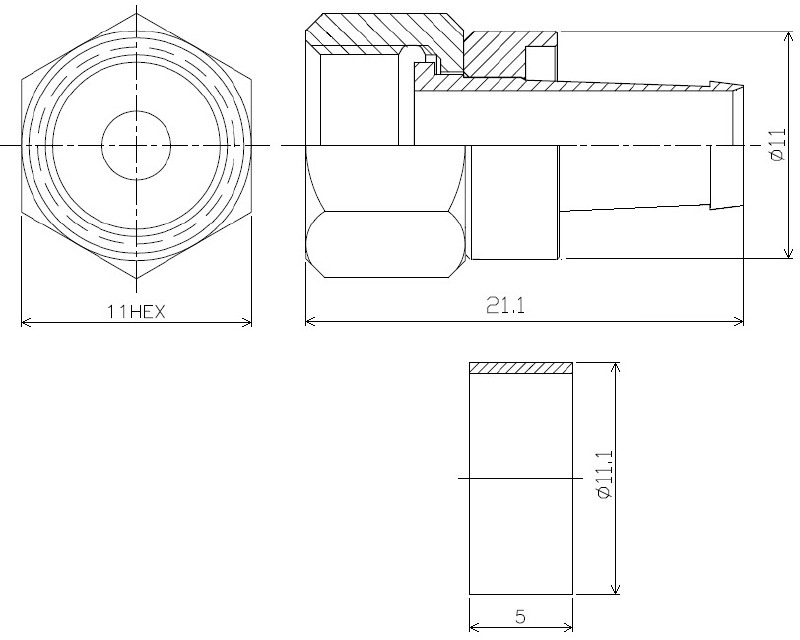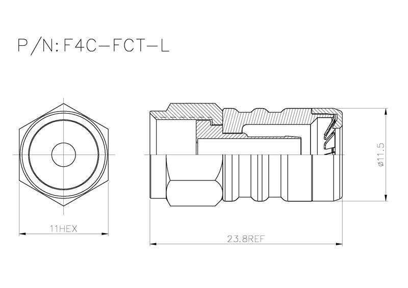 F5C-FCTは5CFBケーブル用で通常サイズのL(ロング23mm)と全長の短いS(ショート15mm)タイプがあります。