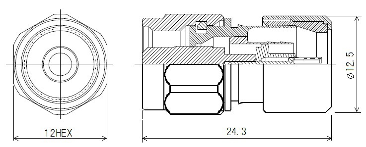 ●ケーブル端末加工寸法(外皮/中心導体):6.35mm/6.35mm