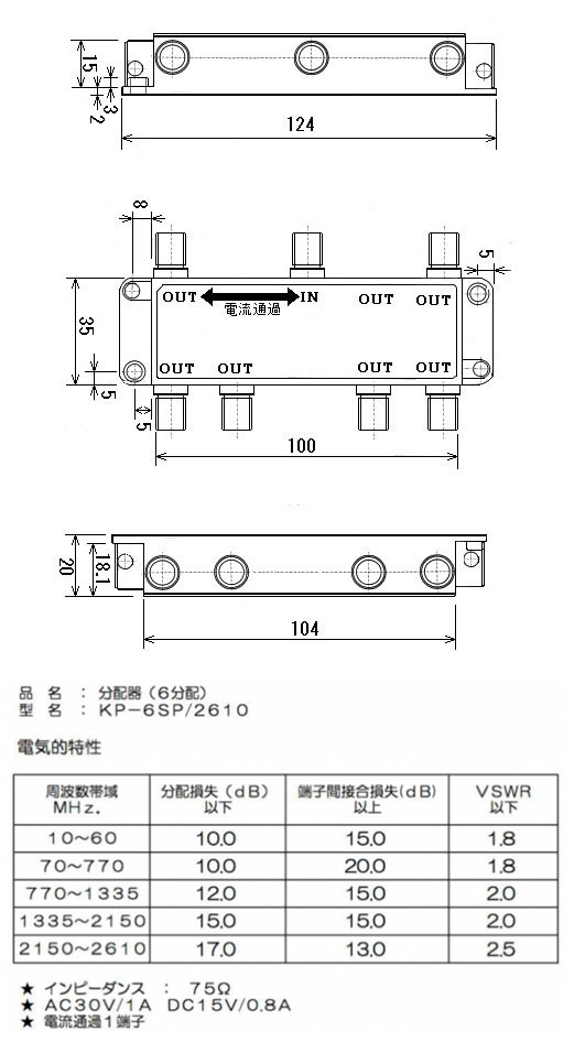 宅内6分配器<<仕様>>