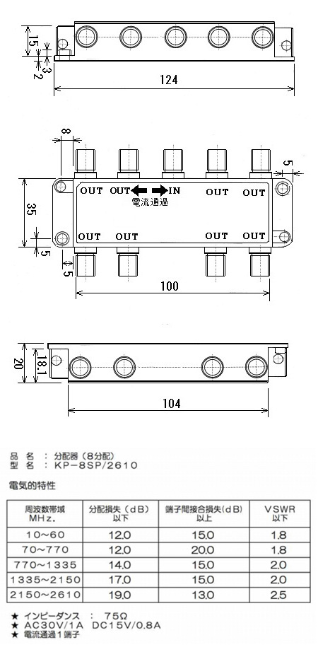 宅内8分配器<<仕様>>